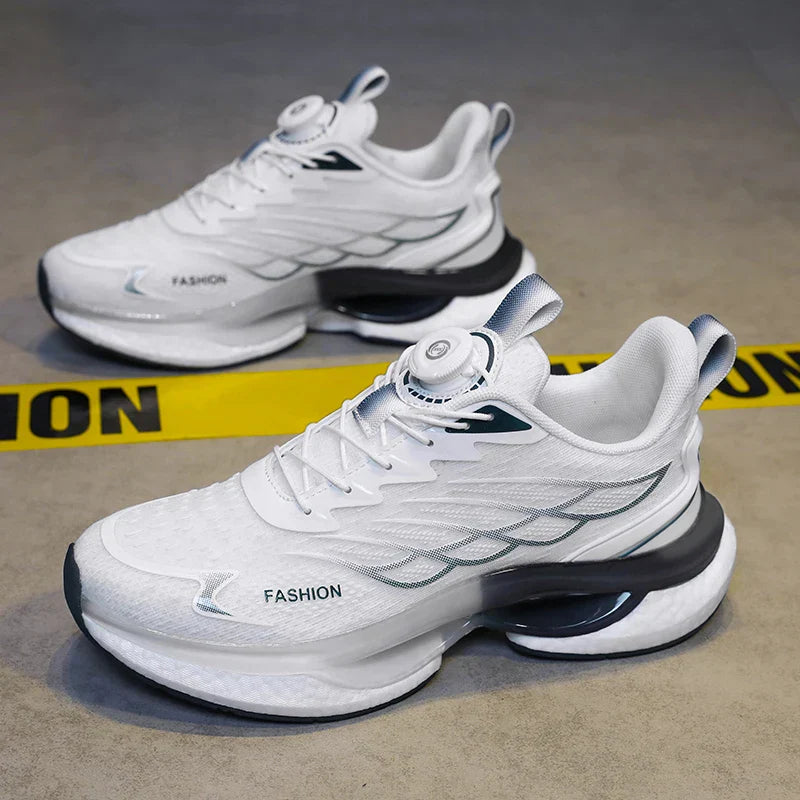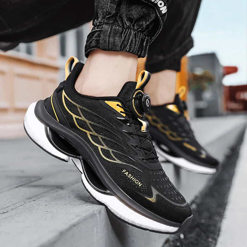 O Tênis Fleet Elite foi desenhado para o homem que não passa despercebido. Unindo um visual agressivo e moderno com detalhes luxuosos em dourado, ele transforma qualquer roupa básica em um outfit de destaque. Mas o grande segredo está no peso: com apenas 186g, ele oferece a robustez de um tênis esportivo com o conforto de estar descalço.