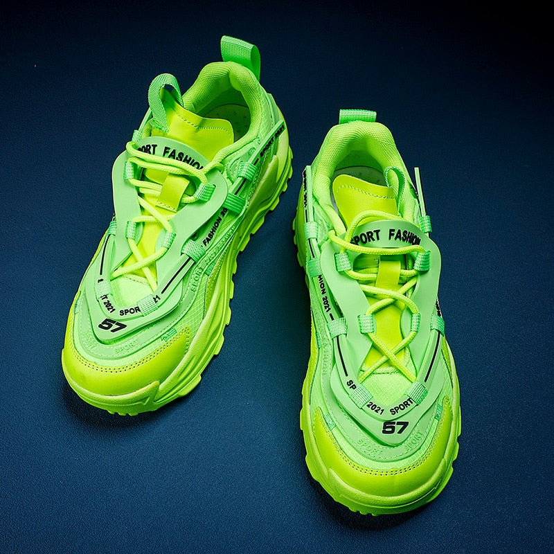 Contraste Neon: A sola e os detalhes em verde vibrante garantem que você se destaque na multidão, além de aumentar a visibilidade em caminhadas noturnas.